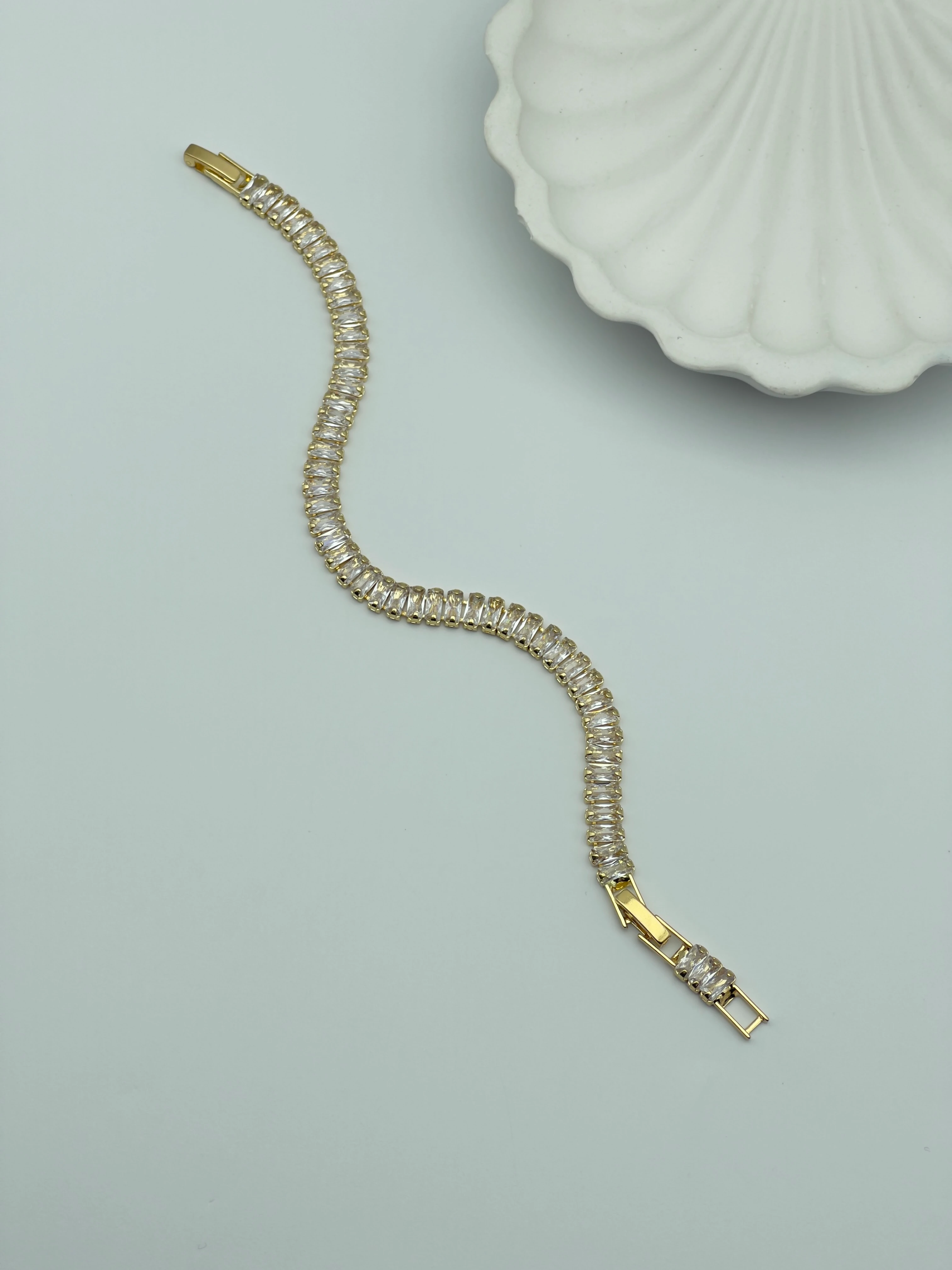 Çelik Renkli Kare Taşlı Gold Su Yolu Bileklik - 25-sbl02